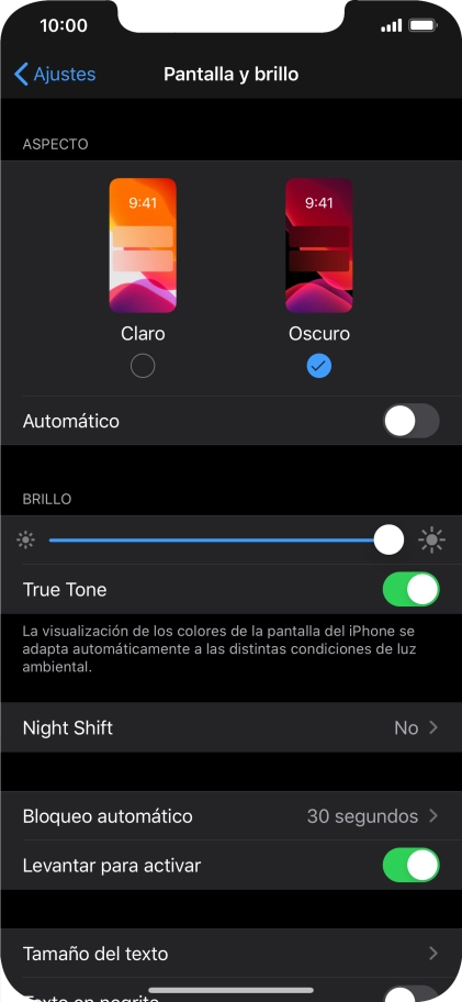 Si activas la función, pulsa Opciones y sigue las indicaciones de la pantalla para seleccionar el período de tiempo que debe durar el Modo Oscuro.