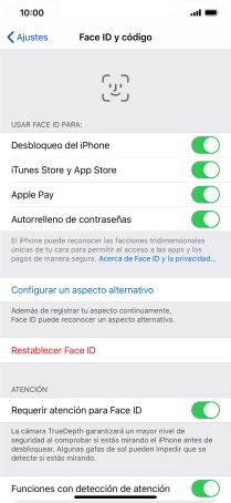 Pulsa Empezar y sigue las indicaciones de la pantalla para crear un código de seguridad con la función de reconocimiento facial (Face ID).