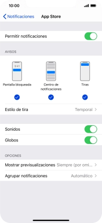 Pulsa el indicador junto a "Permitir notificaciones" para activar o desactivar las notificaciones de la aplicación seleccionada.