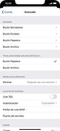 Puedes configurar el teléfono para enviar y recibir correo electrónico desde tus cuentas de correo electrónico. Con el correo IMAP se conservan tus correos electrónicos en el servidor y se sincronizan entre todos los dispositivos. Por consiguiente, puedes acceder a tus correos desde otros dispositivos. Para poder configurar el teléfono para correo electrónico IMAP, tienes que disponer de conexión a Internet en tu móvil. Si no tienes, puedes configurar el APN de tu teléfono para Internet.