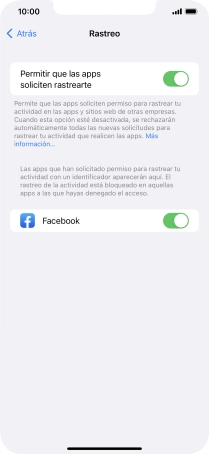 Pulsa el indicador junto a "Permitir que las apps soliciten rastrearte" para activar o desactivar la función.