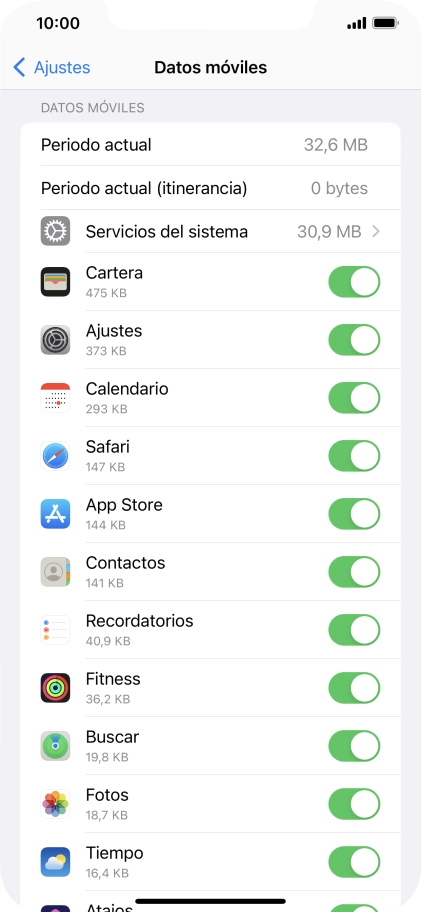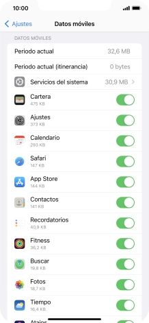 Pulsa el indicador junto a "Datos móviles" para activar o desactivar la función.
