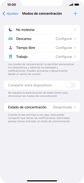 Pulsa Modos de concentración.