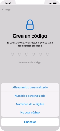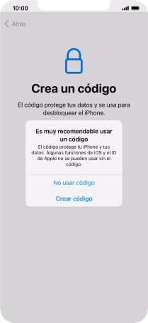 Sigue las indicaciones de la pantalla para activar el uso del código de seguridad o pulsa No usar código.