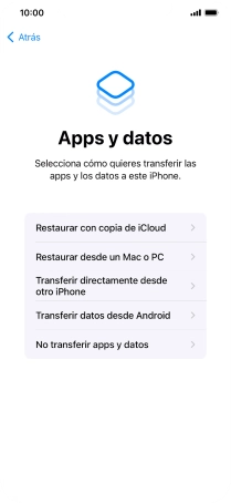 Seguir las indicaciones de la pantalla y de la app "Move to iOS" para transferir contenido de un teléfono con el sistema operativo Android al iPhone y para configurar el teléfono y dejarlo listo para su utilización.