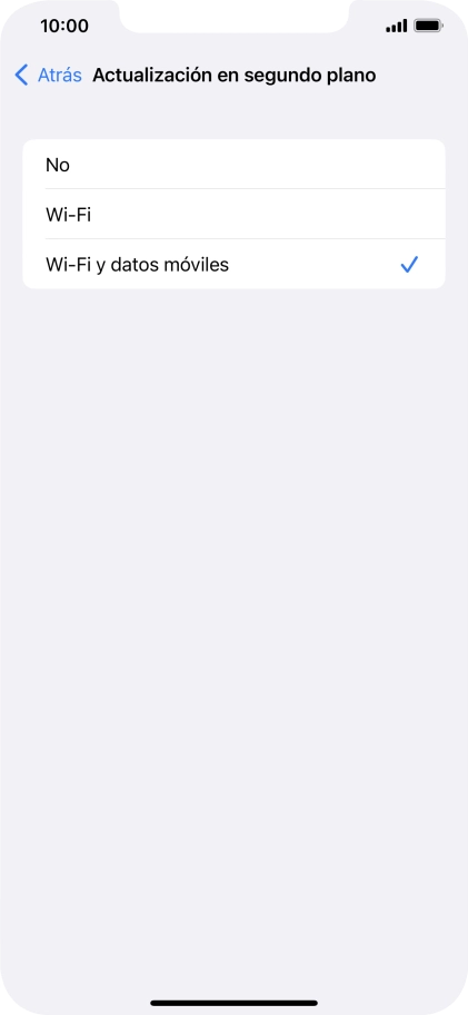 Si activas la actualización de apps en ejecución a través de la red móvil, se actualizará el contenido de las apps cuando el teléfono esté fuera de la cobertura de una red wifi.
