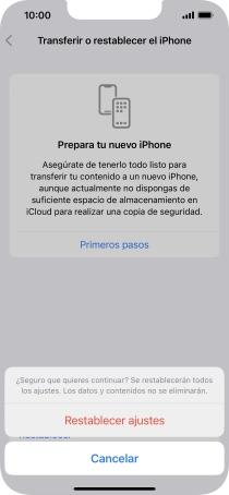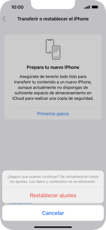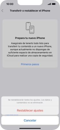 Pulsa Restablecer ajustes. Espera unos instantes mientras el teléfono restablece la configuración predeterminada. Sigue las indicaciones de la pantalla para configurar el teléfono y dejarlo listo para su uso.