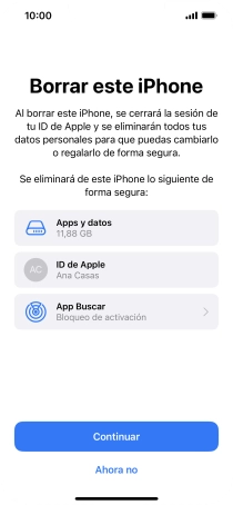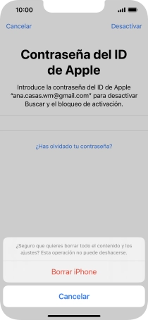 Introduce la contraseña de tu ID de Apple y pulsa Borrar iPhone. Espera unos instantes mientras el teléfono restablece la configuración predeterminada. Sigue las indicaciones de la pantalla para configurar el teléfono y dejarlo listo para su uso.