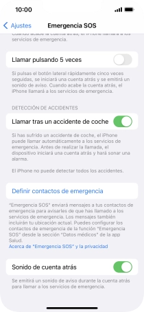 Pulsa el indicador junto a "Llamar tras un accidente de coche" para activar la función.