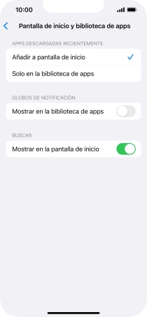 Para añadir nuevas apps descargadas a la pantalla de inicio y a la biblioteca de apps, pulsa Añadir a pantalla de inicio.