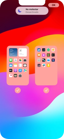 Pulsa en los campos bajo las páginas deseadas de la pantalla de inicio para activar o desactivar la visualización de páginas.