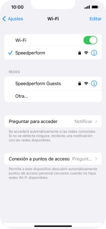 Si la red wifi está protegida con una contraseña, aparecerá un icono de candado junto al nombre de la red wifi. El administrador o el proveedor de red te puede proporcionar la contraseña.