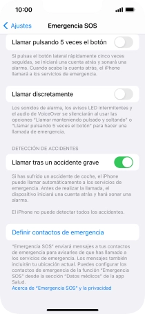 Pulsa el indicador junto a "Llamar tras un accidente grave" para activar la función.