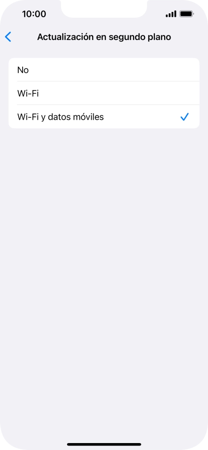 Si activas la actualización de apps en ejecución a través de la red móvil, se actualizará el contenido de las apps cuando el teléfono esté fuera de la cobertura de una red wifi.