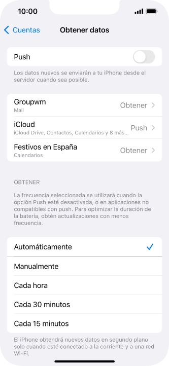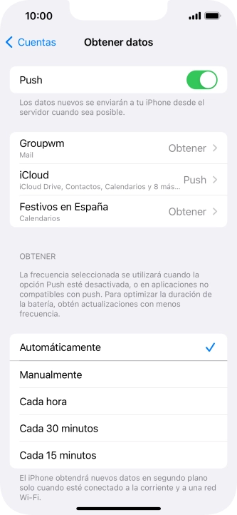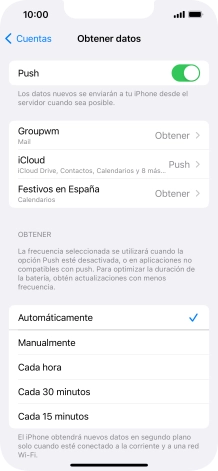 Pulsa el indicador junto a "Push" para activar o desactivar la función.