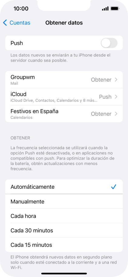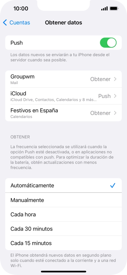 18 Selecciona el ajuste para la descarga de nuevos correos electrónicos
