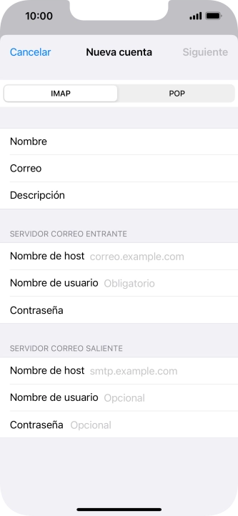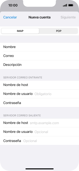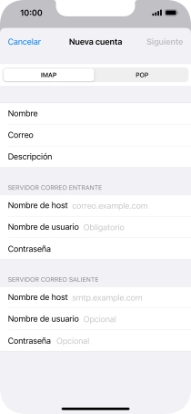 Pulsa Nombre de host e introduce el nombre del servidor de correo de entrada de tu proveedor de correo electrónico.