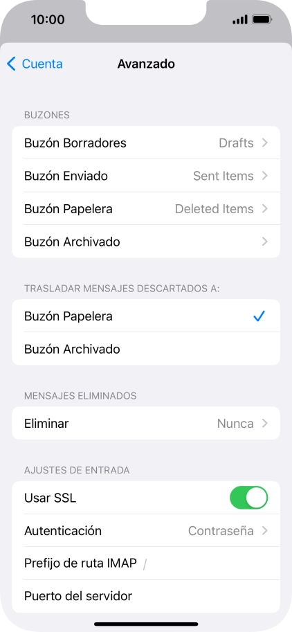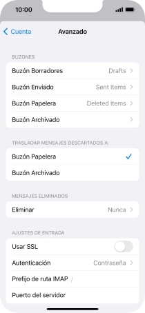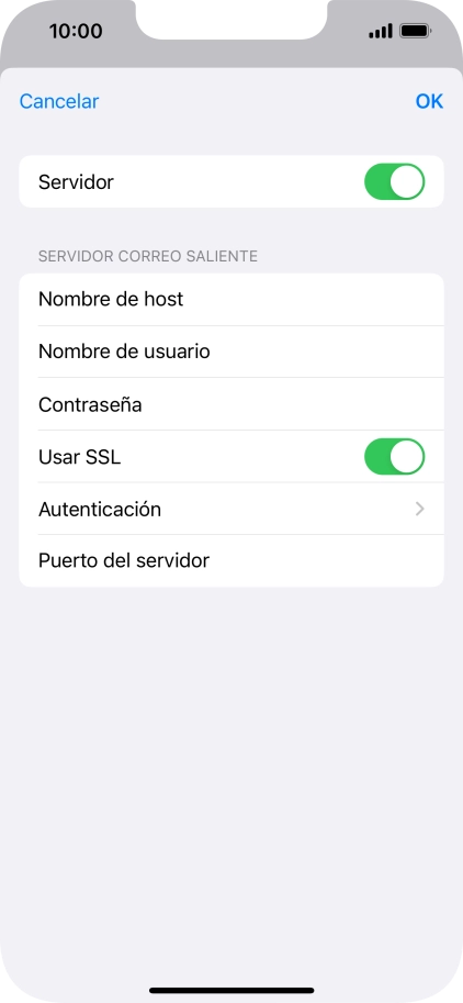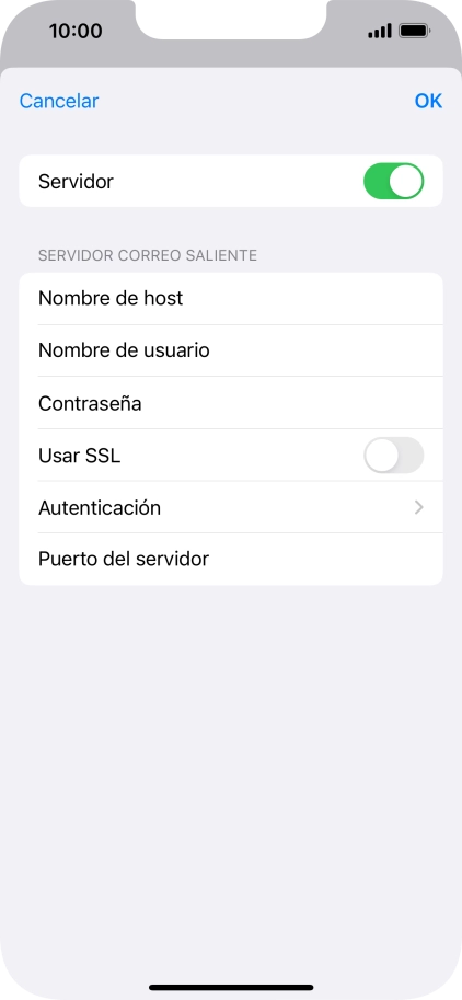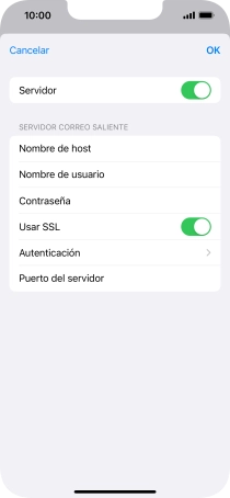 Pulsa el indicador junto a "Usar SSL" para activar la función.