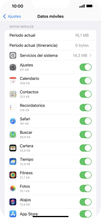 Pulsa el indicador junto a "Datos móviles" para activar o desactivar la función.