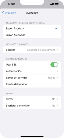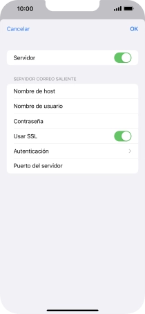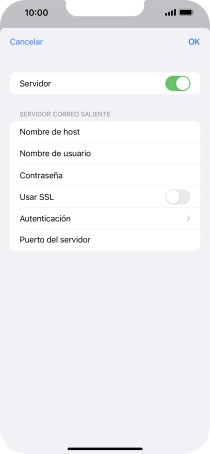 Pulsa el indicador junto a "Usar SSL" para desactivar la función.