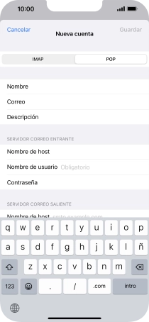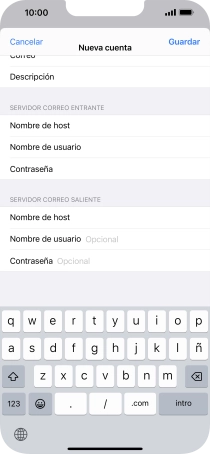 Pulsa Nombre de host e introduce el nombre del servidor de correo de entrada de tu proveedor de correo electrónico.