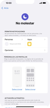4. Selecciona los ajustes de la activación automática de No molestar