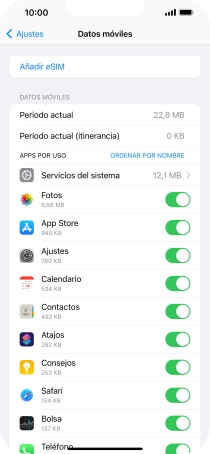 Pulsa el indicador junto a "Datos móviles" para activar o desactivar la función.