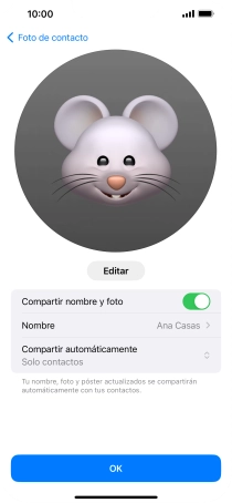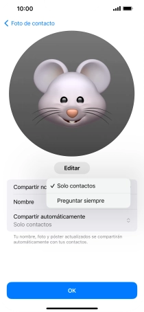 Para poder seleccionar el ajuste de cómo compartir tu póster de contacto, debes activar la función de compartir tu nombre e imagen.