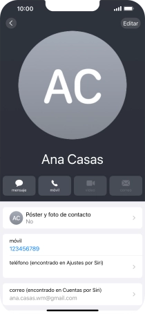 Pulsa Nombre y sigue las indicaciones de la pantalla para editar el nombre del póster de contacto.
