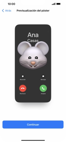 Pulsa en el campo del nombre y sigue las indicaciones de la pantalla para seleccionar el tipo de letra y el color de tu nombre en el póster de contacto.