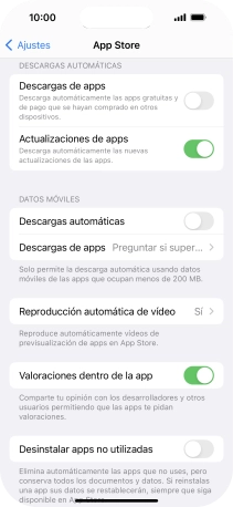 Puedes configurar el teléfono para que elimine de forma automática las apps que llevas sin utilizar mucho tiempo para poder liberar espacio en la memoria del teléfono. Todos los ajustes y los datos de las apps se guardan y se restauran cuando vuelves a instalar la app de App Store.