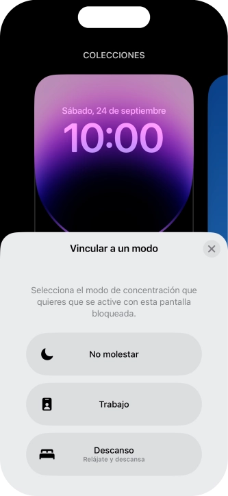 Puedes configurar el teléfono para que utilice una pantalla de bloqueo determinada junto con un modo de concentración seleccionado.