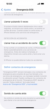 Pulsa el indicador junto a "Llamar tras un accidente de coche" para activar la función.