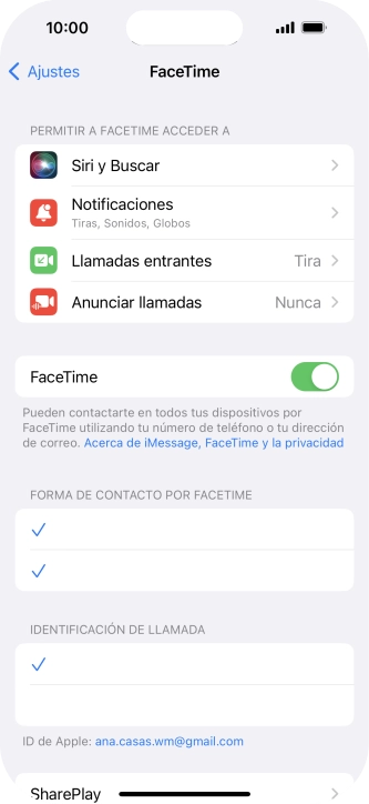 Pulsa el indicador junto a "SharePlay" para activar o desactivar la función.