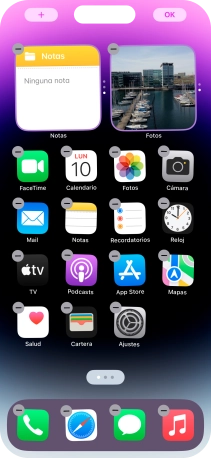 Pulsa en los campos bajo las páginas deseadas de la pantalla de inicio para activar o desactivar la visualización de páginas.