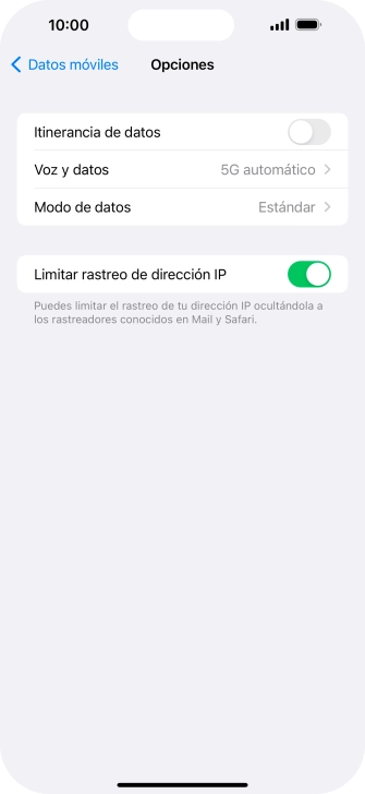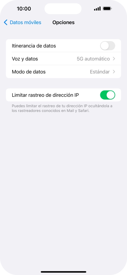2 Activa o desactiva el roaming de datos