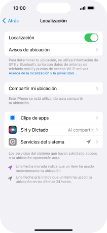 Pulsa el indicador junto a "Localización" para activar o desactivar la función.