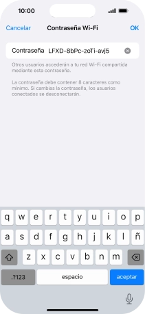 2. Introduce la contraseña del punto de acceso personal