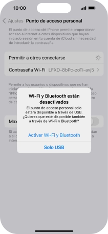 Introduce la contraseña de tu punto de acceso personal y establece conexión.