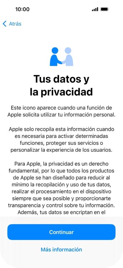 Sigue las indicaciones de la pantalla para activar el uso del reconocimiento facial (Face ID) o pulsa Configurar más tarde.
