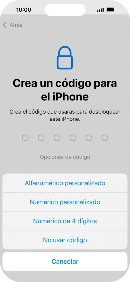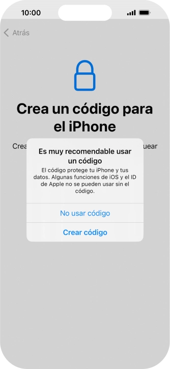 Sigue las indicaciones de la pantalla para activar el uso del código de seguridad o pulsa No usar código.