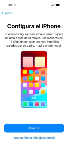 Si el teléfono lo va a usar un menor que todavía no ha cumplido 13 años, sigue las indicaciones de la pantalla para crear un ID de Apple para el menor.