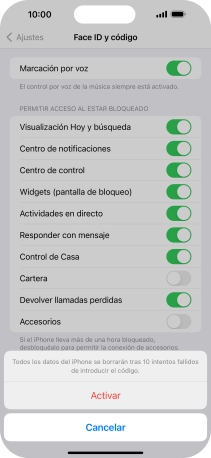 Pulsa Activar código e introduce un código de seguridad de libre elección dos veces seguidas.