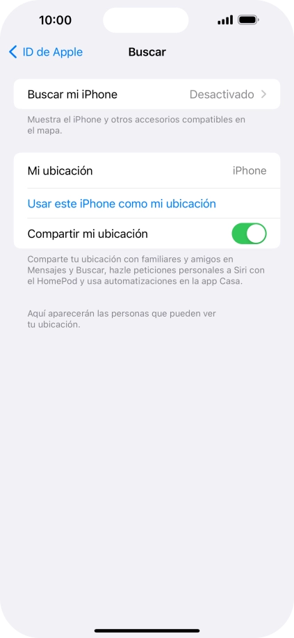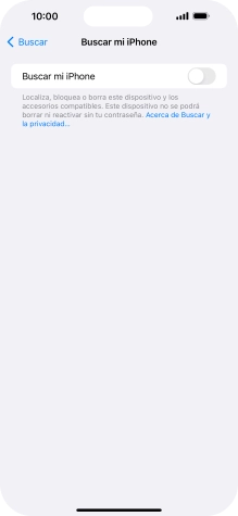 Pulsa el indicador junto a "Buscar mi iPhone" para activar la función.