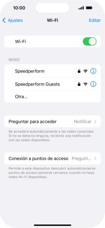 Si la red wifi está protegida con una contraseña, aparecerá un icono de candado junto al nombre de la red wifi. El administrador o el proveedor de red te puede proporcionar la contraseña.