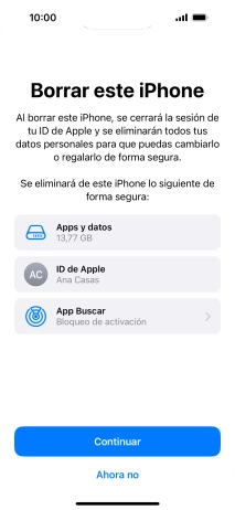 Introduce la contraseña de tu ID de Apple y pulsa Borrar iPhone. Espera unos instantes mientras el teléfono restablece la configuración predeterminada. Sigue las indicaciones de la pantalla para configurar el teléfono y dejarlo listo para su uso.
