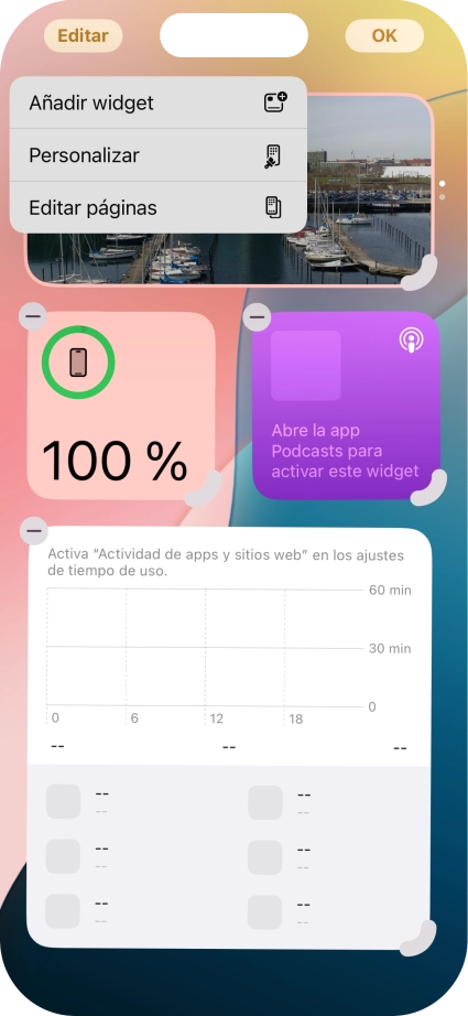 Pulsa el widget deseado hasta que aparezca un menú emergente en la pantalla.