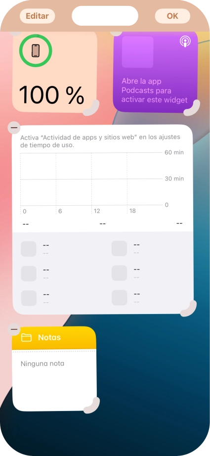Desliza el dedo hacia arriba o hacia abajo por la pantalla para ver más widgets.