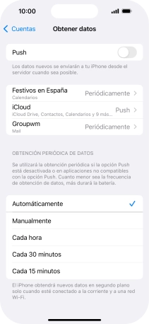 18. Selecciona el ajuste para la descarga de nuevos correos electrónicos