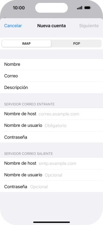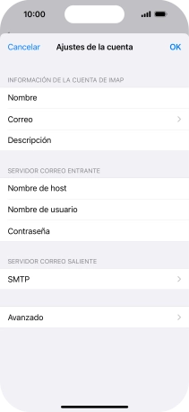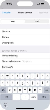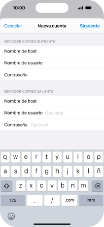 Pulsa Nombre de host e introduce el nombre del servidor de correo de entrada de tu proveedor de correo electrónico.